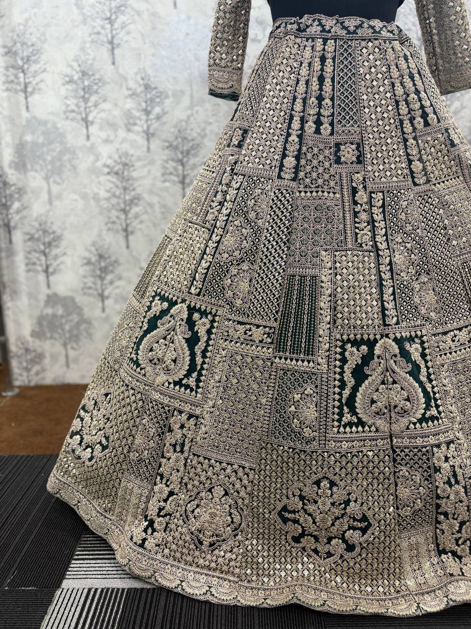 Dry Mehndi Green Butterfly Net Lehenga with Heavy Golden Zari Work – Vastram Couture