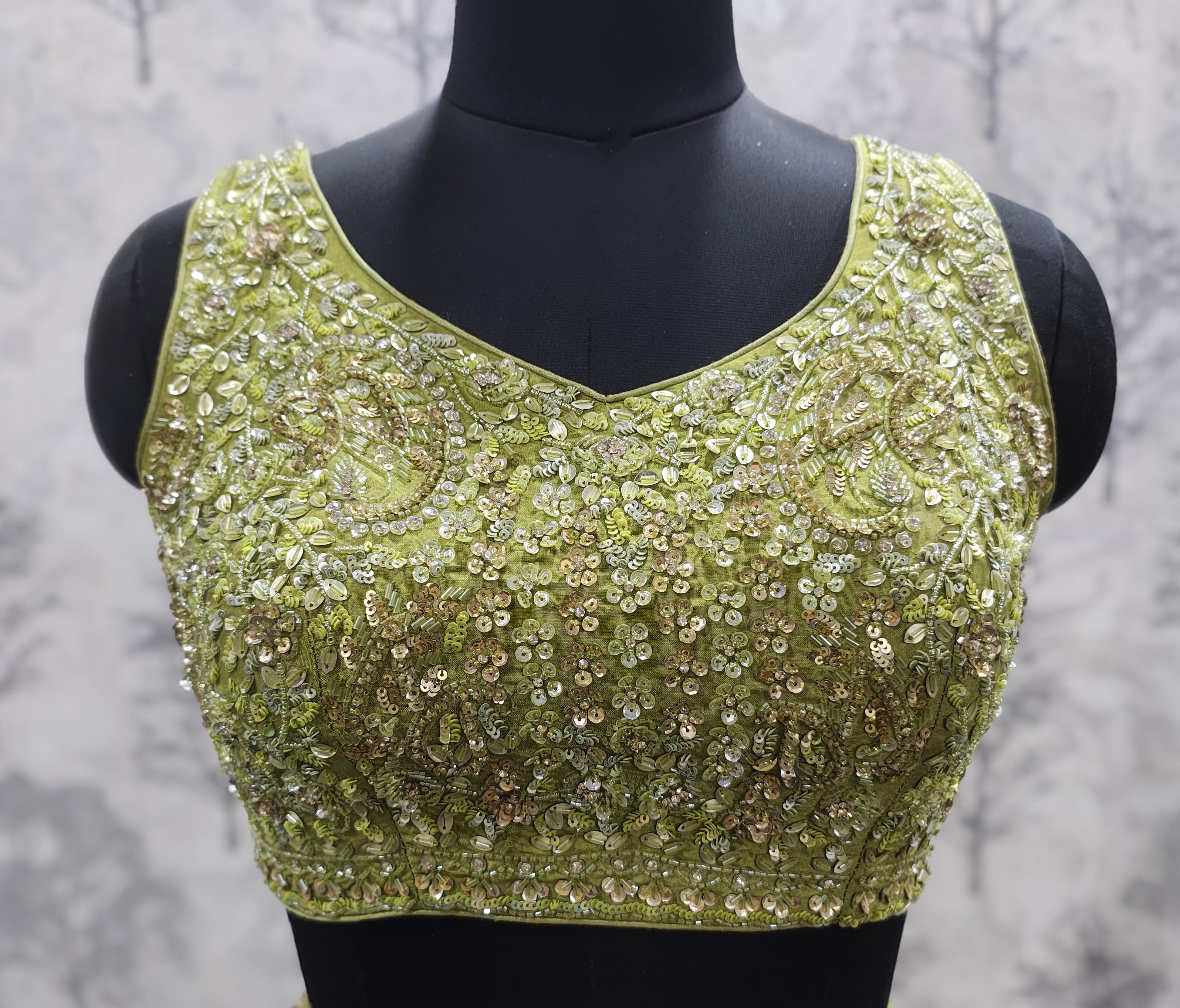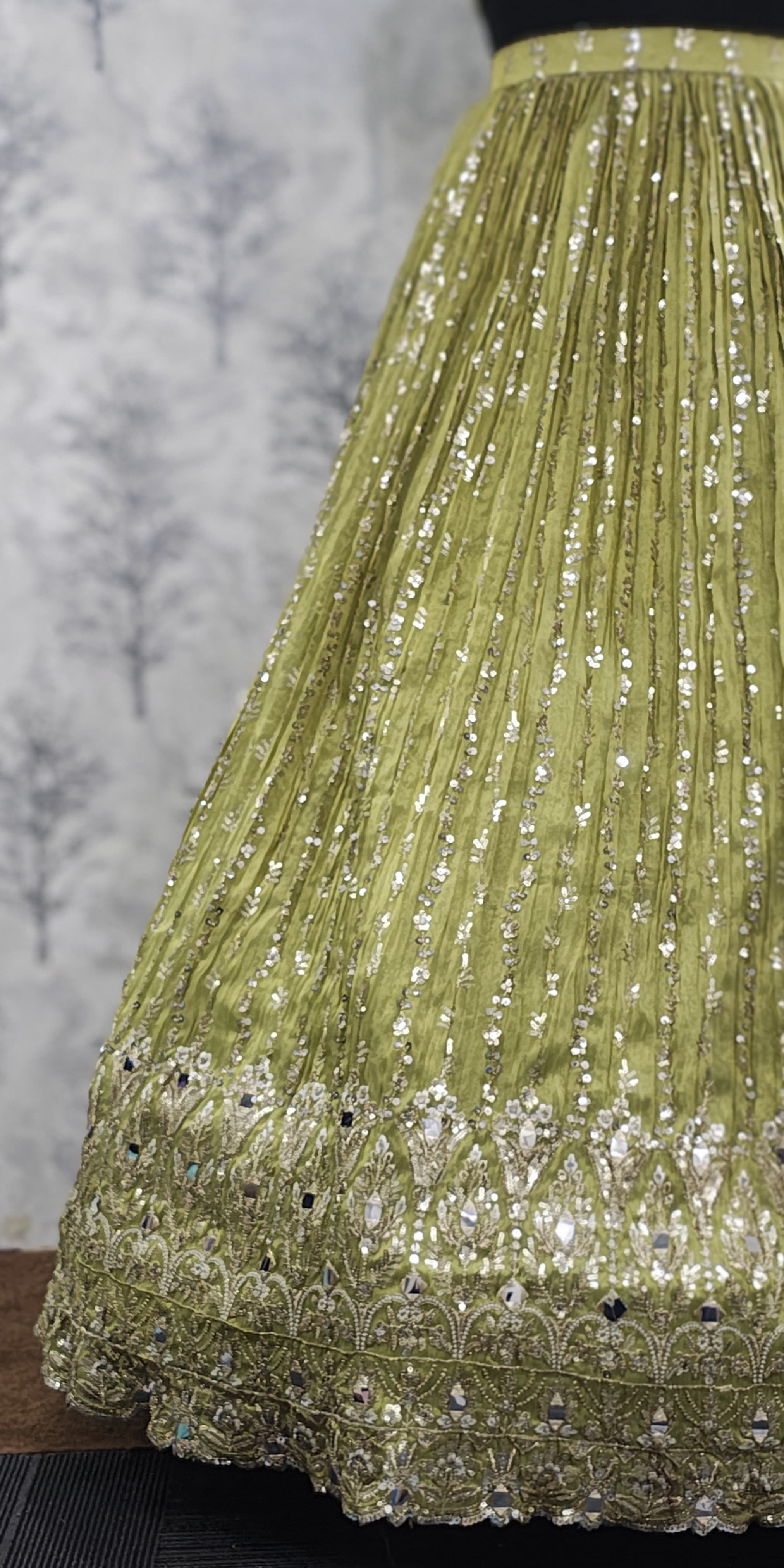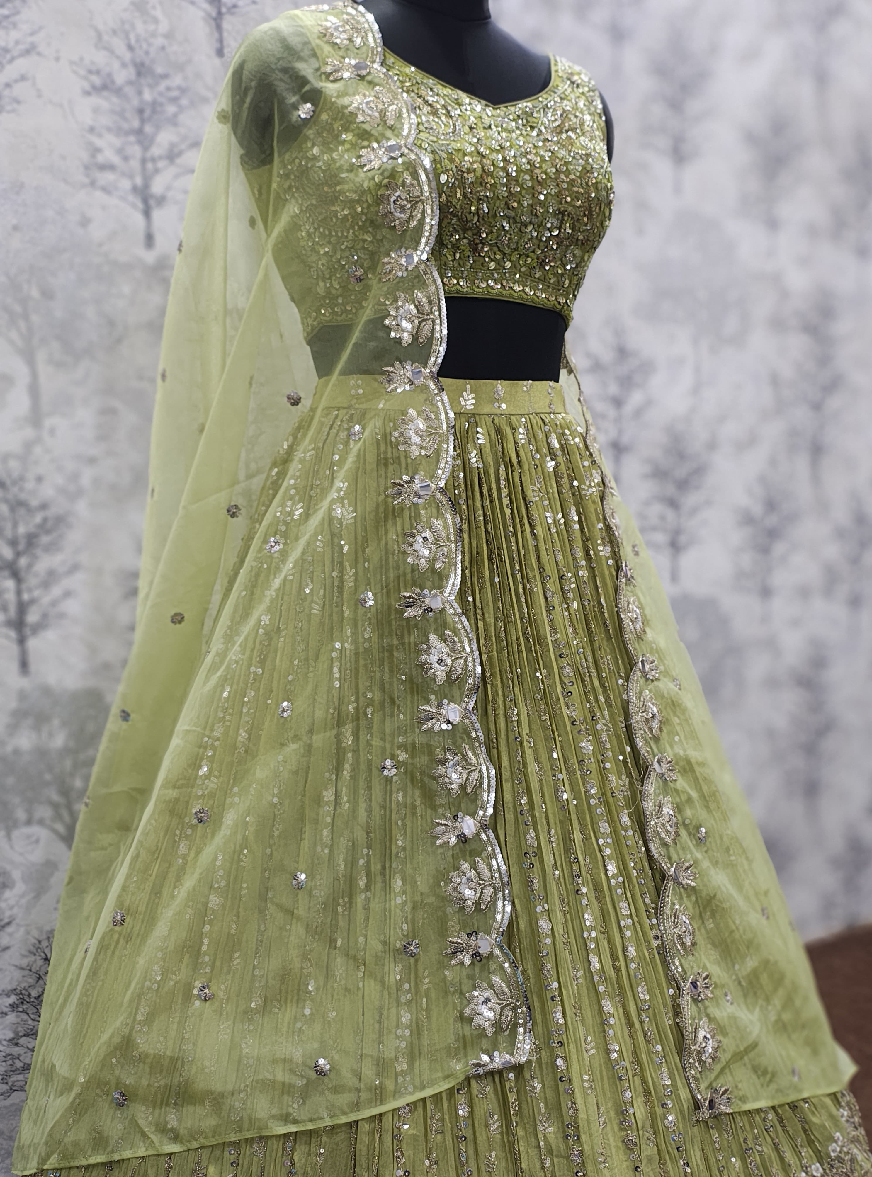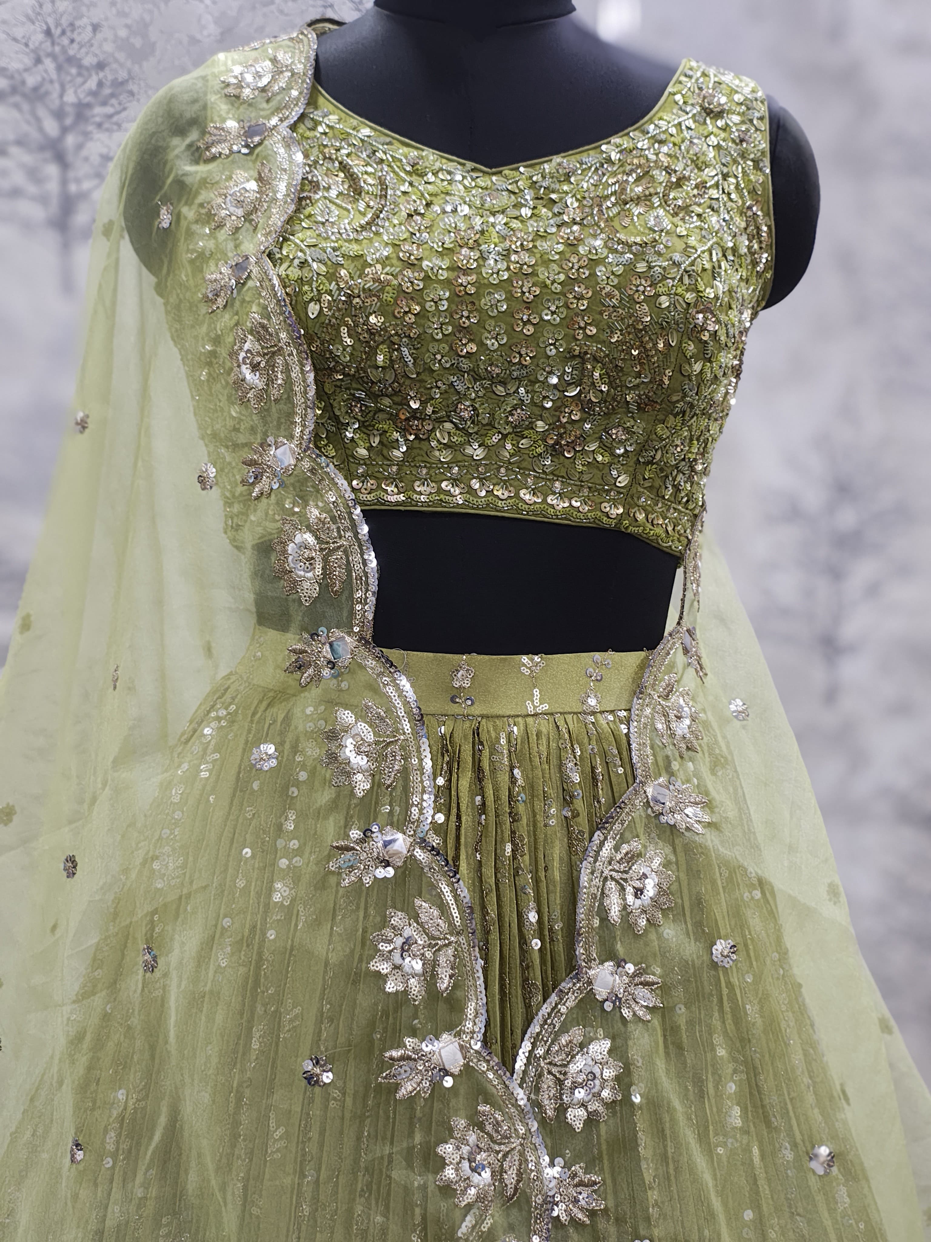 Whether you're dancing the night away at a sangeet or posing for bridal portraits, this Light Mehendi lehenga is designed to make you shine — effortlessly and elegantly.