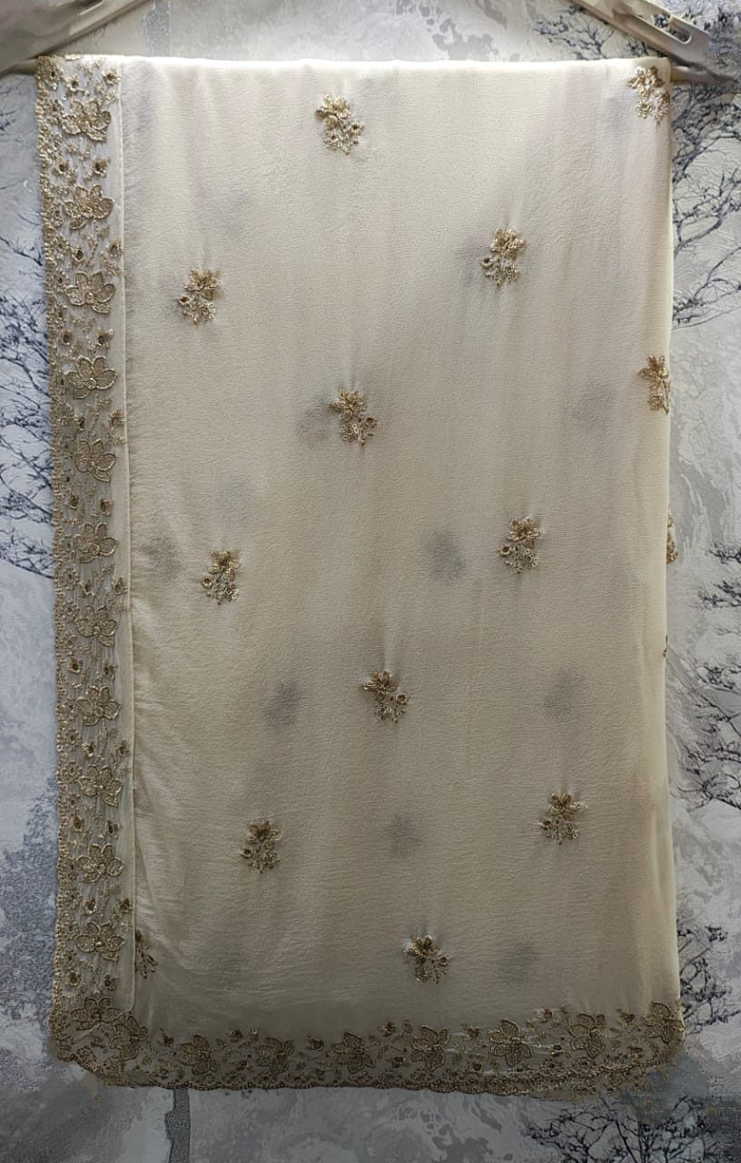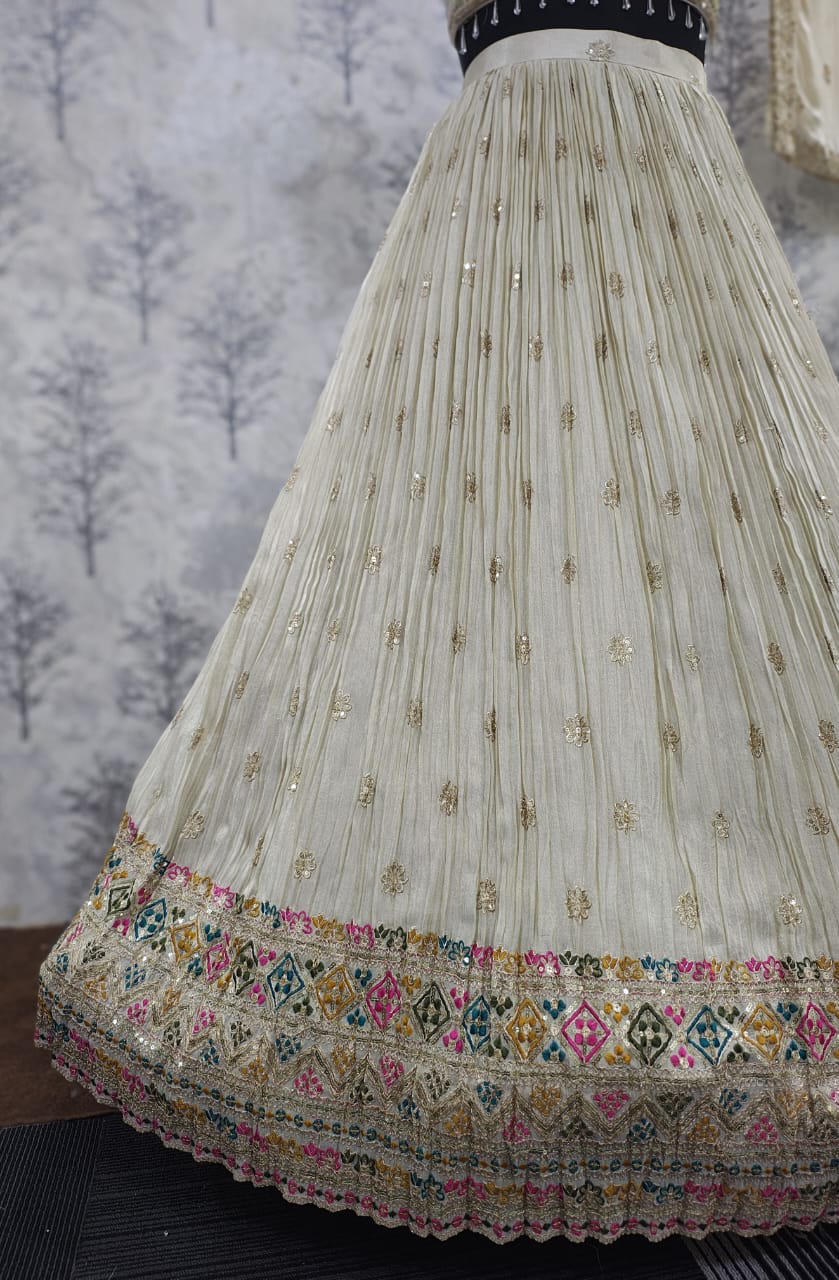 Off-White Multicolour Thread Embroidered Georgette Lehenga Set with Dupatta with different touch