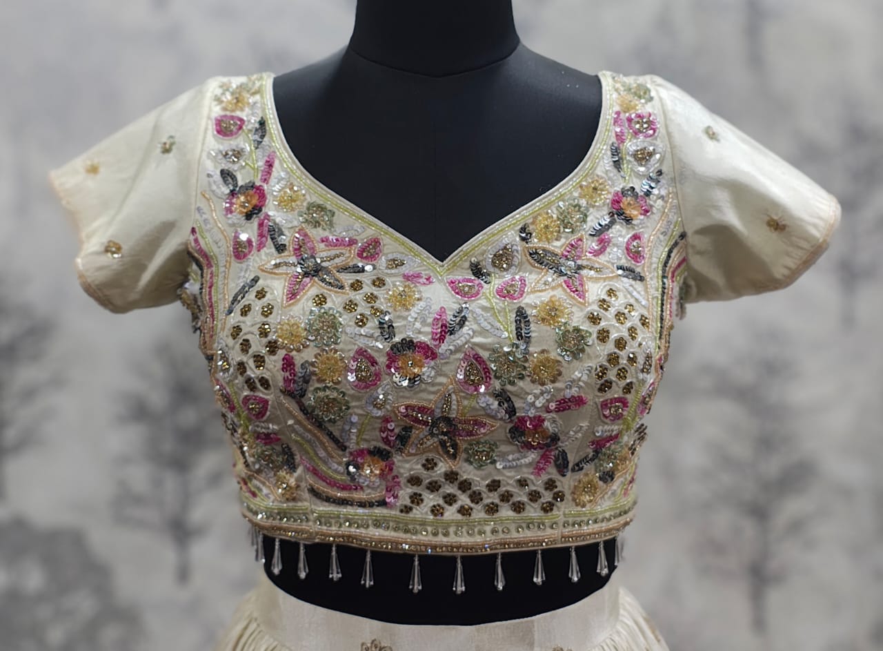 Step into timeless elegance with this exquisite off-white lehenga set from VastramCouture, thoughtfully handcrafted to blend tradition with modern sophistication.