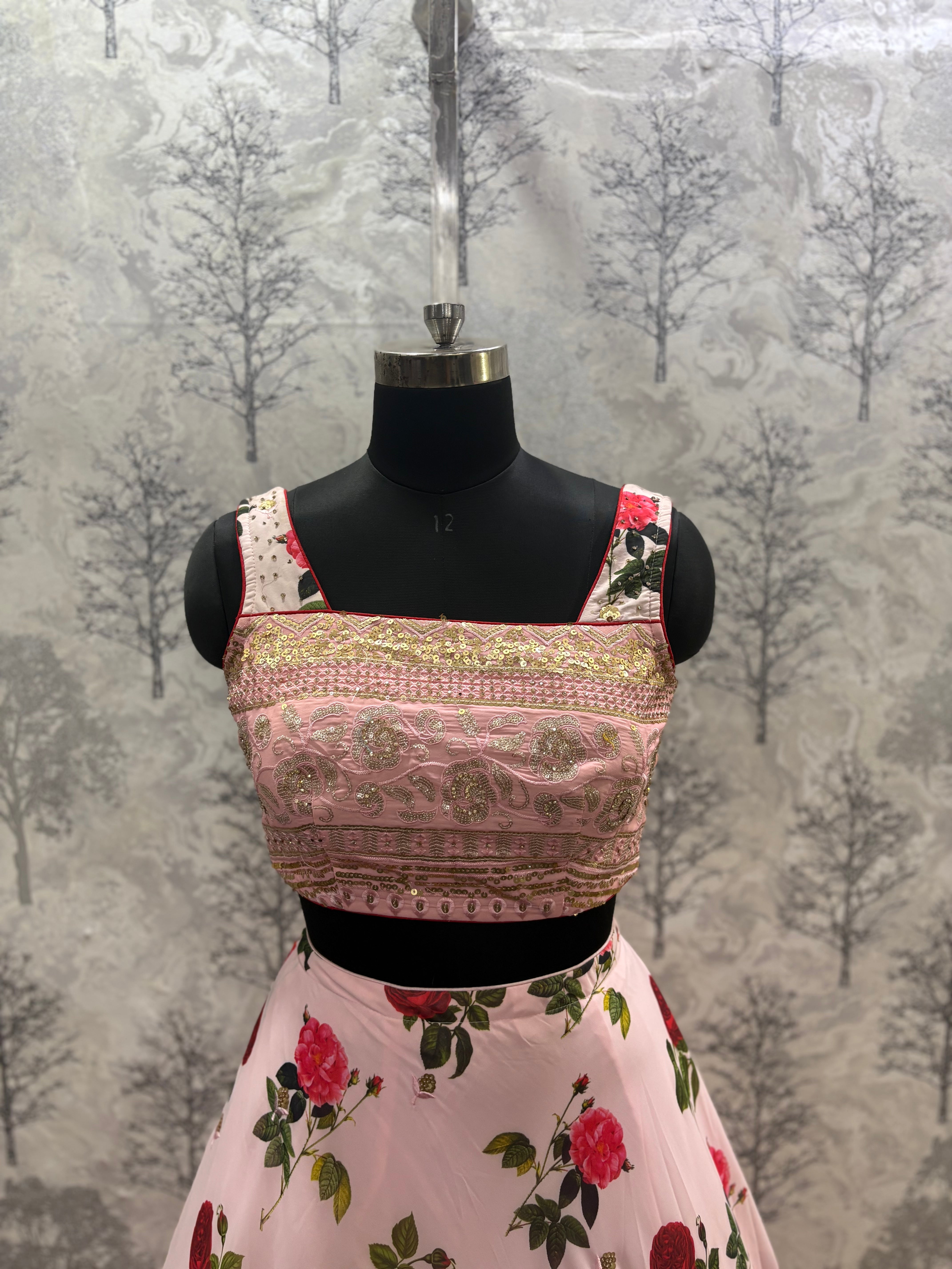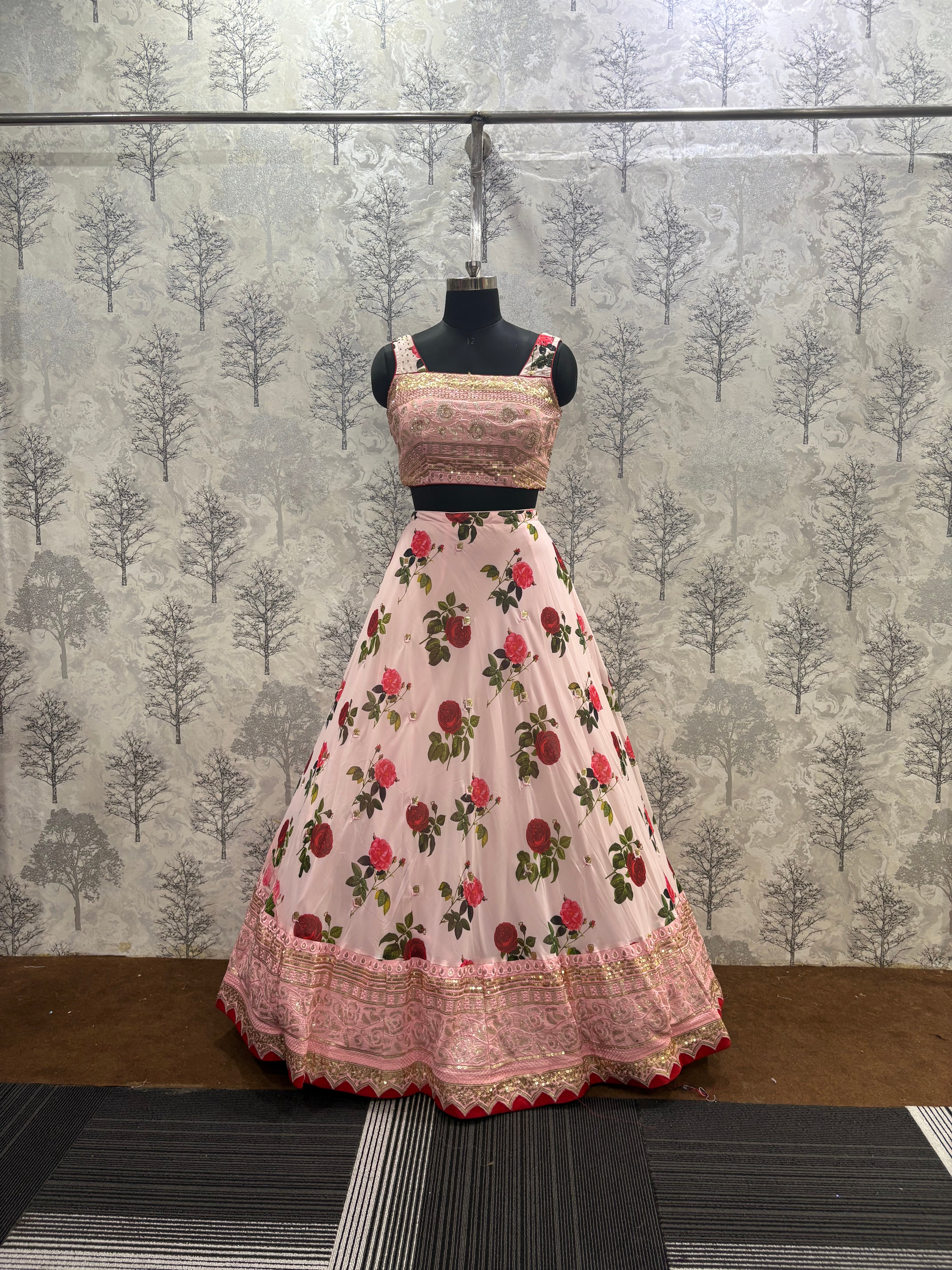 Step into effortless elegance with our lightweight Chinnon Lehenga Set, crafted for comfort and charm. This ensemble features a beautifully printed chinnon lehenga with a graceful heavy border that adds a refined finish.